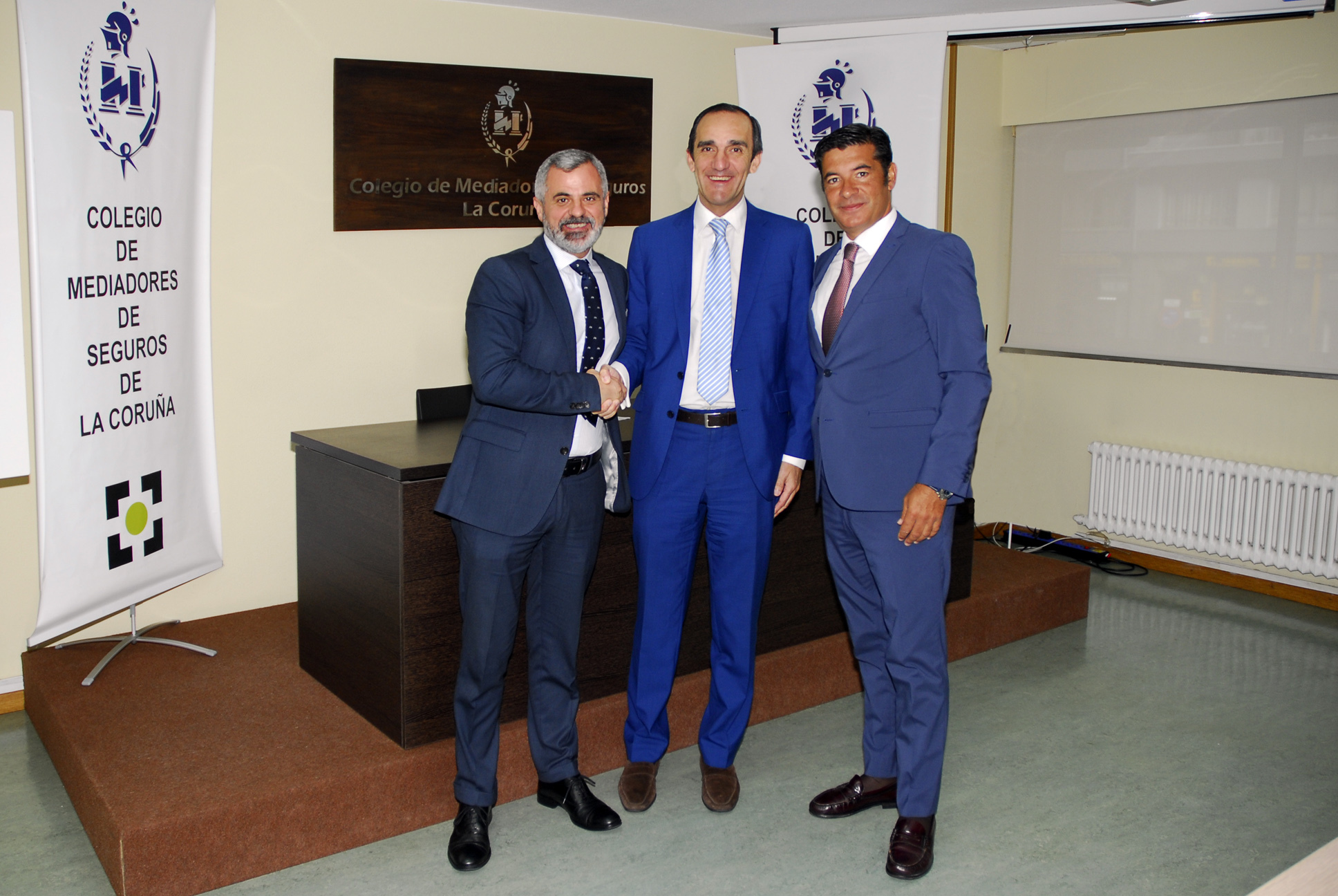 El Colegio de Mediadores de La Coruña y Asisa han firmado un acuerdo de colaboración que estrechará los lazos entre ambas instituciones. El convenio abarca aspectos como la formación, la colaboración en actividades colegiales y la participación en jornadas y eventos. Al acto de la firma acudieron Juan Manuel Sánchez-Albornoz, presidente del colegio, y José María Peino, gerente de Asisa en A Coruña y Lugo, acompañado por Benjamín Pastor, coordinador comercial regional de Galicia de la aseguradora.