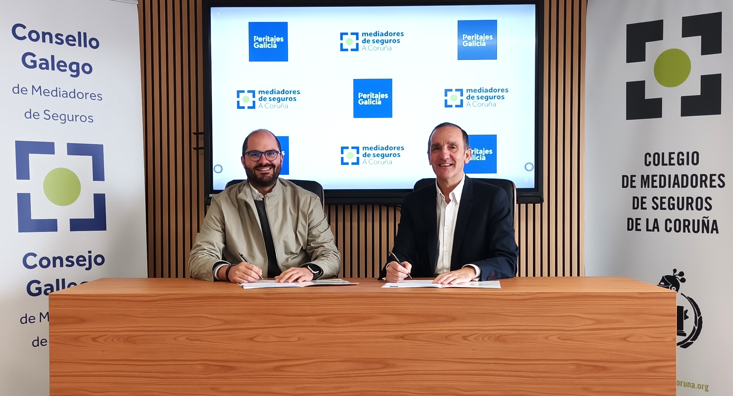 El Colegio de Mediadores de La Coruña ha cerrado un acuerdo con Peritajes Galicia con el objetivo de "mejorar la oferta de servicios a todos los colegiados gallegos". La firma tuvo lugar en las instalaciones colegiales y contó con la participación del presidente del colegio, Juan Manuel Sánchez-Albornoz, y de José Llorente, socio director de Peritajes Galicia.