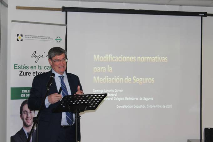 El 19 de mayo, el Colegio de Mediadores de Gipuzkoa celebró una jornada sobre la nueva Directiva de Distribución de Seguros. Tras el saludo de bienvenida del presidente del colegio, Iñaki Durán, Domingo Lorente, secretario general y asesor jurídico del Consejo General, fue el encargado de desarrollar la ponencia.