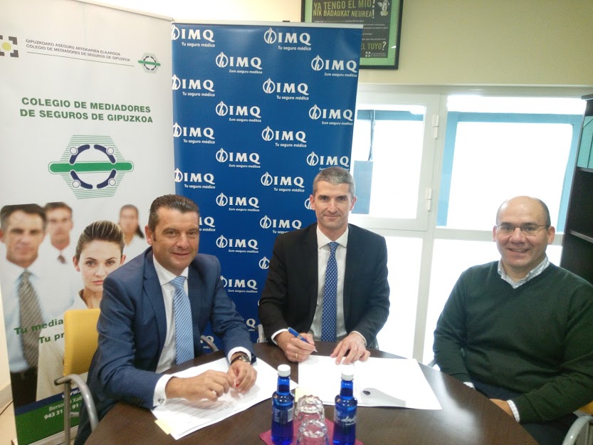 El Colegio de Mediadores de Guipuzkoa e IMQ han firmado un acuerdo de colaboración. La aseguradora ofrecerá en las instalaciones del colegio una jornada de formación gratuita sobre la nueva Directiva de Distribución de Seguros el 29 de noviembre. Además, su imagen será visible en la página web del órgano colegial. En la firma del convenio estuvieron presentes el presidente del colegio, Iñaki Durán, y su vicepresidente, Javier Cartón; y por parte de IMQ, su director general adjunto, Javier Aguirregabiria, y el responsable de la delegación de IMQ en Gipuzkoa, Urko Odriozola.