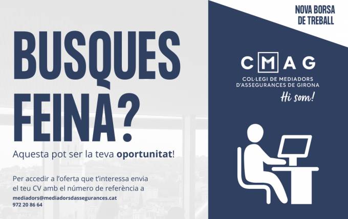 El Colegio de Mediadores de Seguros de Girona ha puesto en marcha una Bolsa de Trabajo, un servicio diseñado para conectar corredurías, agencias y entidades colaboradoras con profesionales interesados en desarrollar su carrera dentro del sector asegurador.