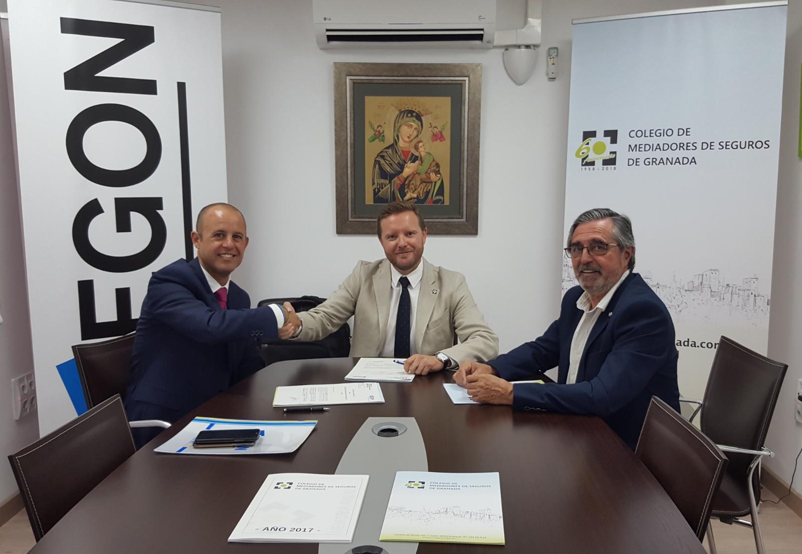 Aegon y el Colegio de Mediadores de Granada han formalizado su acuerdo de colaboración por el que ambas entidades estrecharán aún más sus lazos. El acuerdo se ha formalizado esta semana en la sede colegial tras la rúbrica de Genaro Sánchez, presidente del colegio, y Tomás Alfaro, consejero delegado de Aegon para España, por el que ambas instituciones trabajarán la difusión de su imagen corporativa, estableciendo reuniones periódicas, jornadas formativas y acciones, junto a beneficios en líneas de productos exclusivos para los mediadores colegiados y sus familiares de primer grado, entre otros.