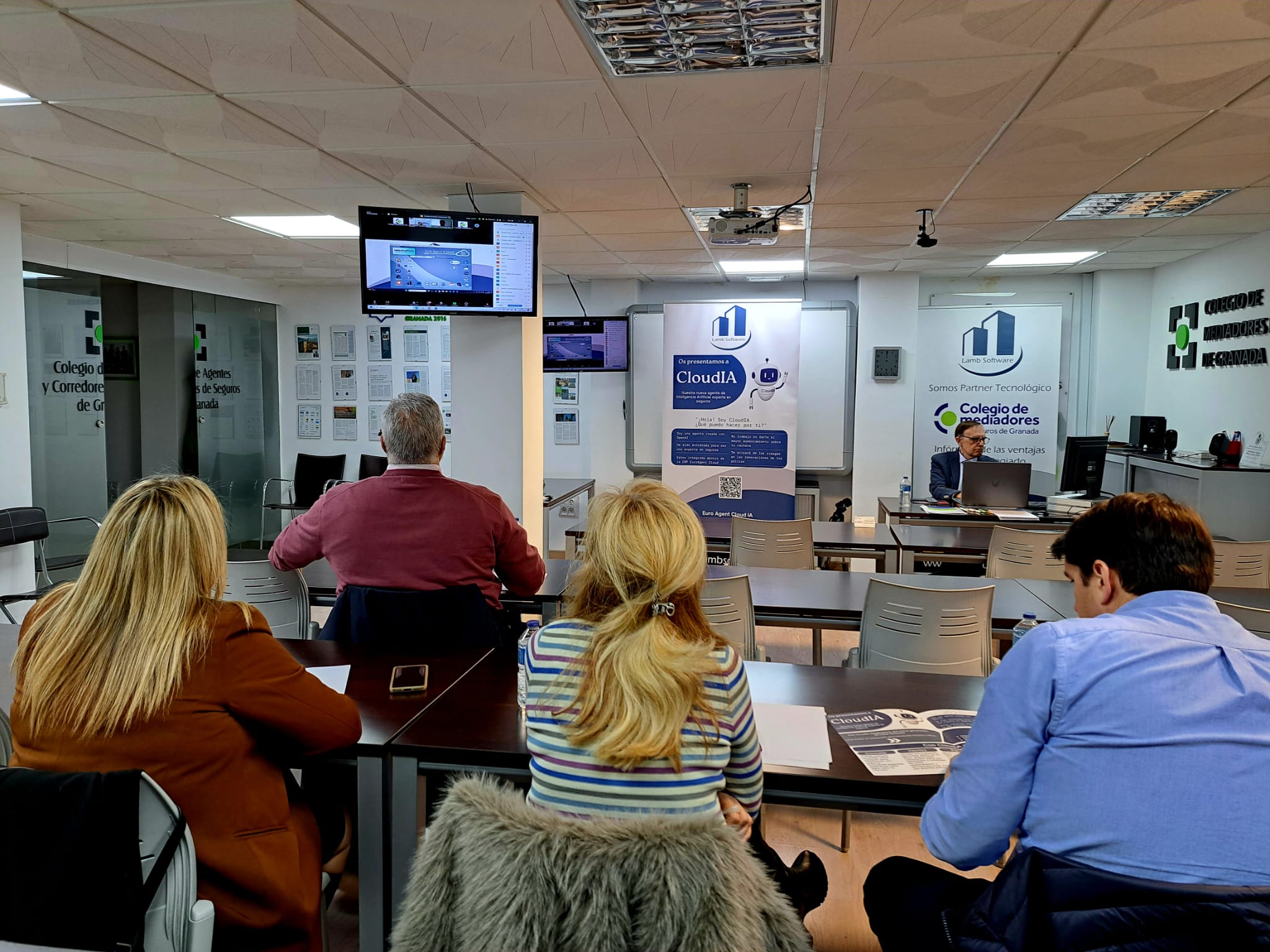 El Colegio de Granada en colaboración con la empresa tecnológica Lamb Software han celebrado una jornada formativa bajo el título 'La Inteligencia Artificial en la ERP. Presentación Euro Agente Cloud-IA Experta en Seguros' con el objetivo de ir introduciendo a los mediadores colegiados en las utilidades que para su trabajo tiene la Inteligencia Artificial.