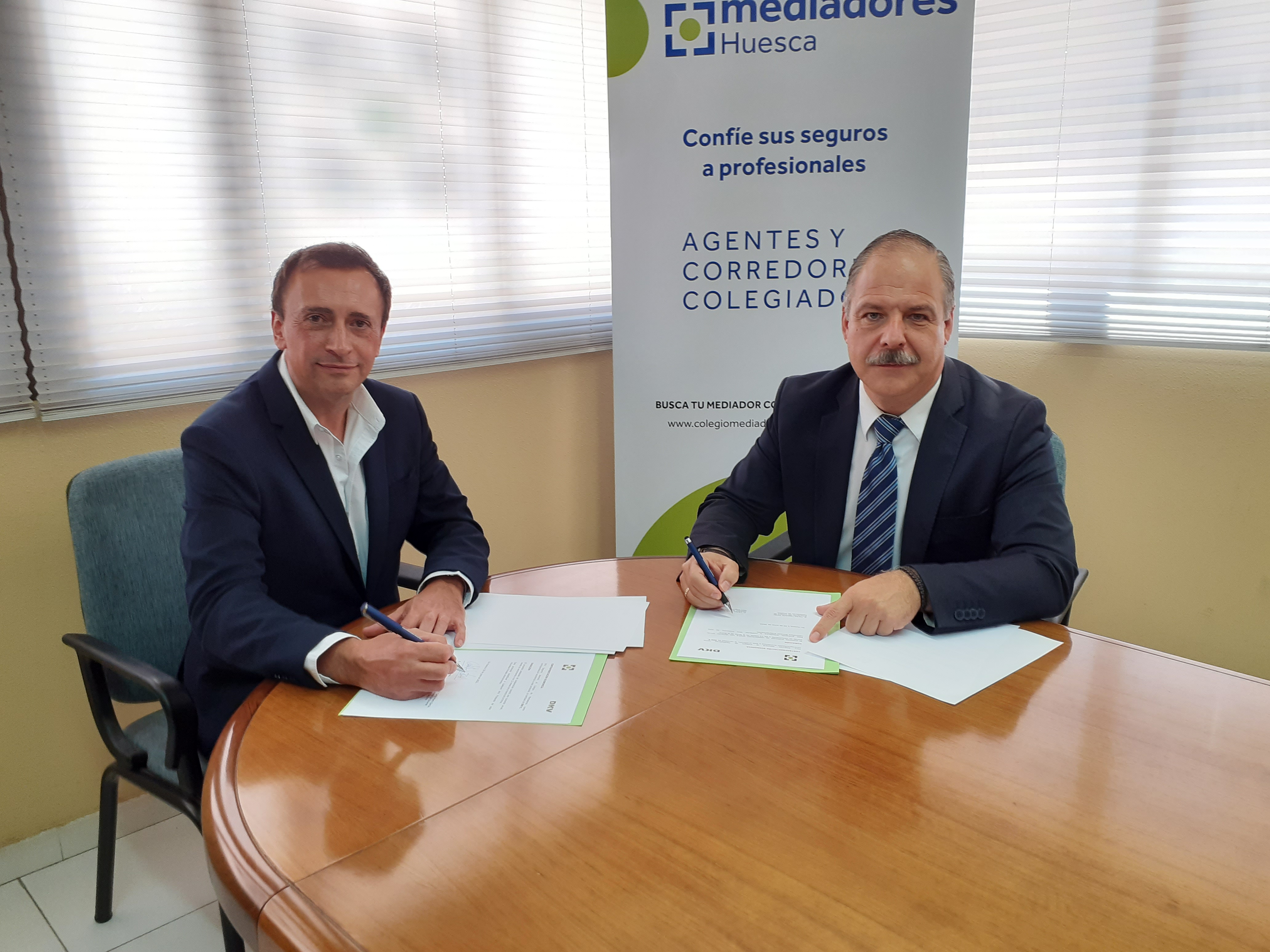 El acuerdo contempla la celebración de actividades y jornadas formativas sobre los diferentes ramos en los que opera la aseguradora así como el desarrollo de otras acciones. El convenio lo han rubricado Carlos Marín, director de la sucursal de Huesca de DKV Seguros, y Carlos Laguarta, presidente del Colegio de Mediadores.