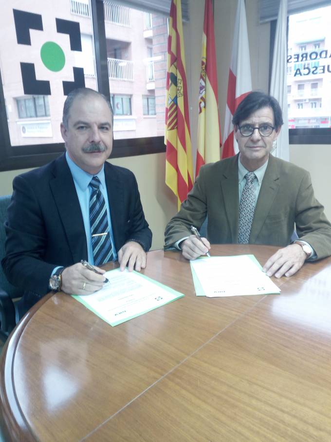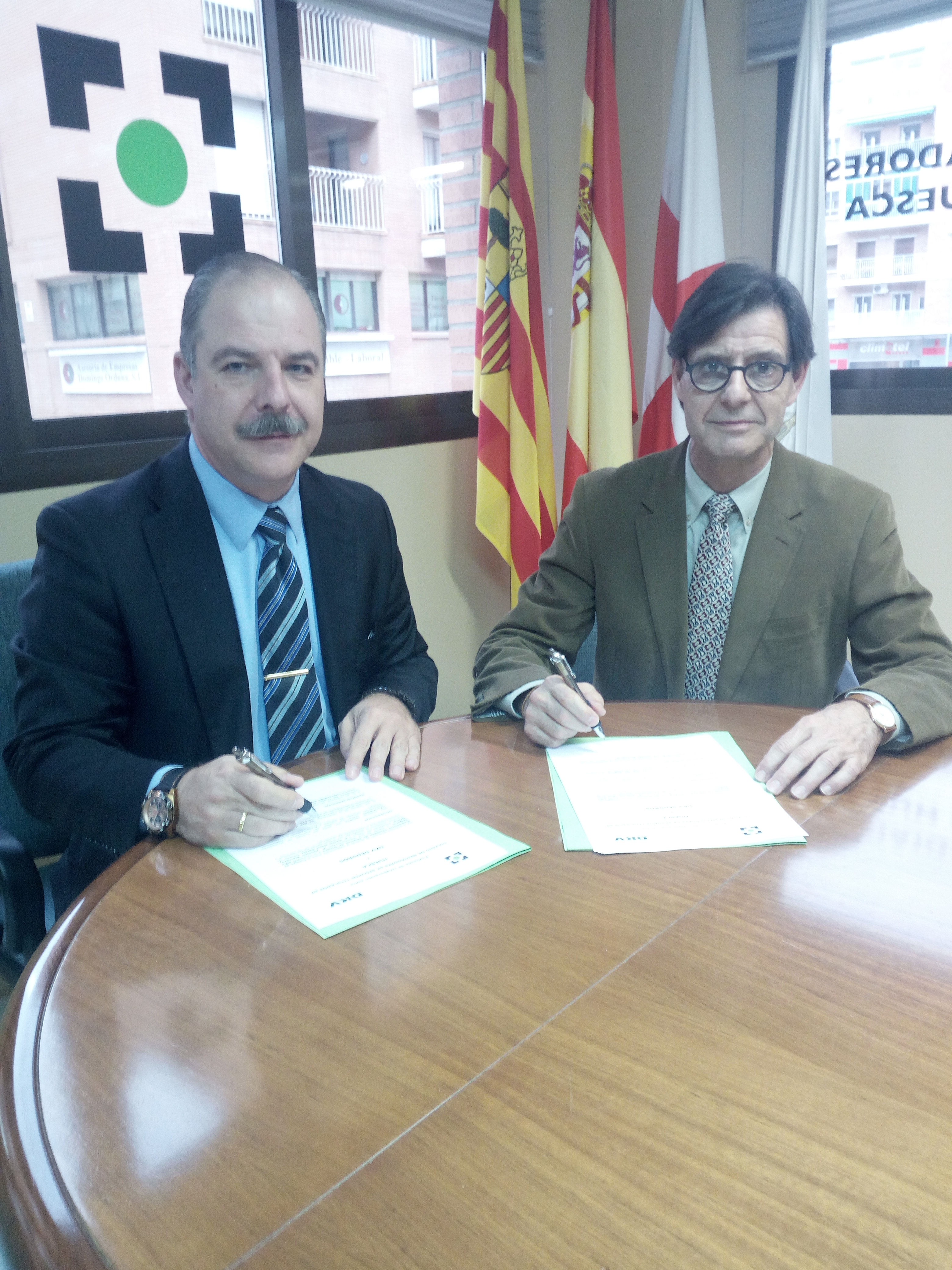 El Colegio de Mediadores de Huesca y DKV Seguros han renovado sus acuerdo de colaboración a través de la firma del director de la sucursal de la aseguradora en la zona, Carlos Marín, y el presidente del colegio, Antonio Mascaray.