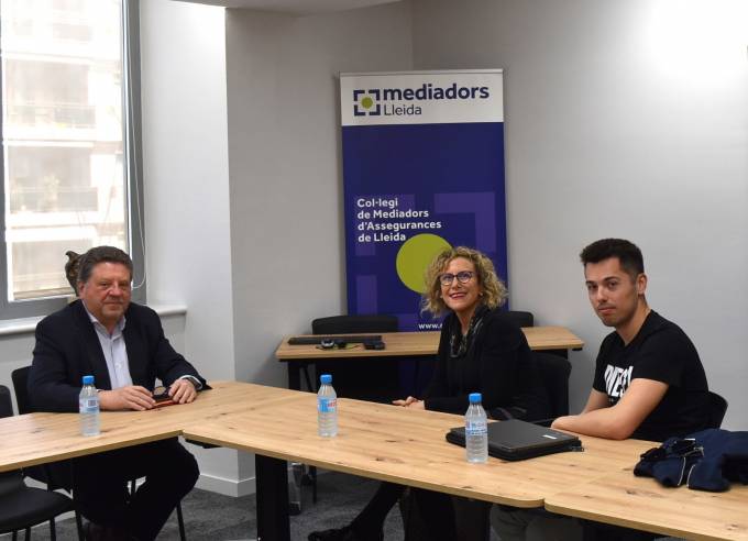 El presidente del Colegio de Lleida, Javier Barberá, se ha reunido con representantes de la Escola del Treball de Lleida para hablar de la FP Dual y la continuidad de la formación del alumnado especializada en seguros. Uno de los próximos pasos será la visita a la sede colegial de alumnos de 1º y 2º curso de estos estudios donde se les hablará del sector asegurador, de sus salidas profesionales, etc. Además, ambas partes firmarán próximamente un protocolo de colaboración.