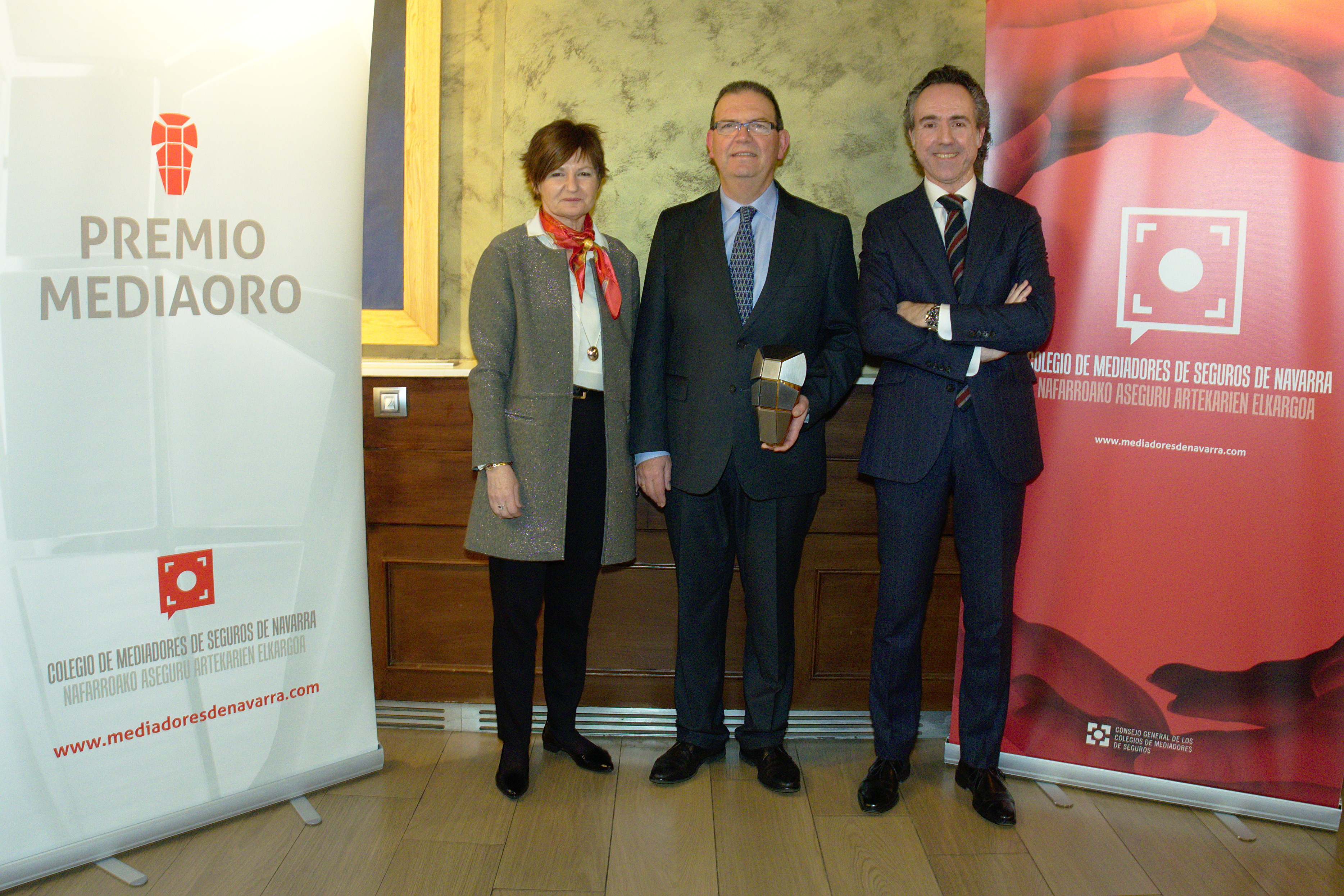 El Colegio de Navarra concedió el premio Mediaoro a Carlos Alonso, director de Alme Correduría, en reconocimiento a su profesionalidad. Mirian Arnedo, vocal al organismo, se refirió al premiado como "un referente y una figura imprescindible en la mediación de seguros de la Comunidad foral". Rafa Martinicorena, secretario, recordó que "Alonso se enfrentó no hace demasiado tiempo a un par de siniestros de mucha importancia que trascendieron a la opinión pública por su buena tramitación". "El premiado transmite una sensación de tranquilidad y de control sobre el negocio. Sabe enfrentarse a los problemas y apoya la figura del mediador colegiado, dándole el realce que se merece".
