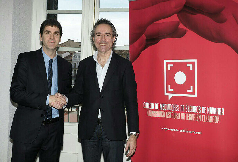 El Colegio de Mediadores de Navarra y Lagun Aro han firmado, por 9º año consecutivo, un acuerdo de colaboración. Rubén Irisarri, director de la sucursal aseguradora en Navarra, ha recordado que los acuerdos con los diferentes organismos provinciales “gozan de buena salud y se refleja en la formación que organizamos todos los años de la mano del Cecas”. Alberto Moreno, presidente del colegio, ha comentado que la formación es uno de los pilares fundamentales para crecer como profesional.