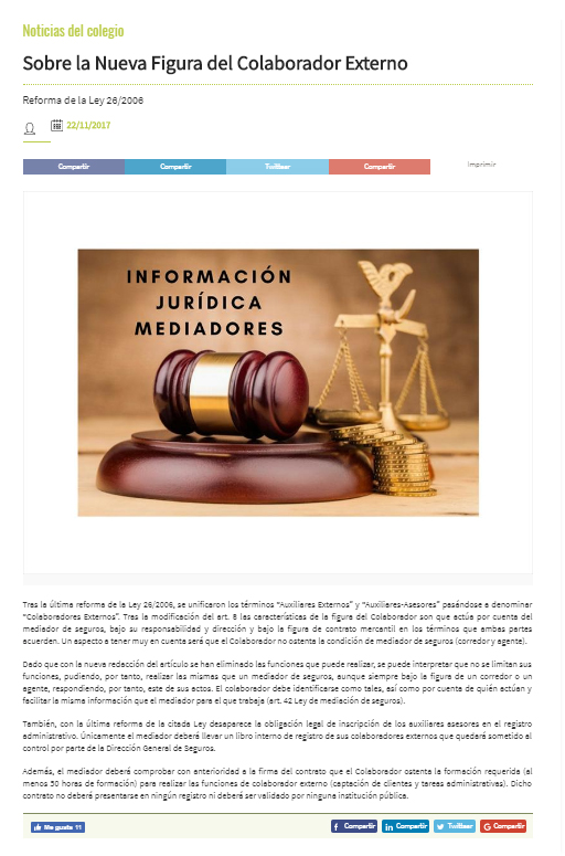 Entre las dudas más frecuentes se encuentran las consecuencias jurídicas del impago de la prima o la nueva figura del colaborador externo. Estos son precisamente los temas con los que se ha inaugurado el nuevo servicio que presta el colegio de asesoría jurídica.