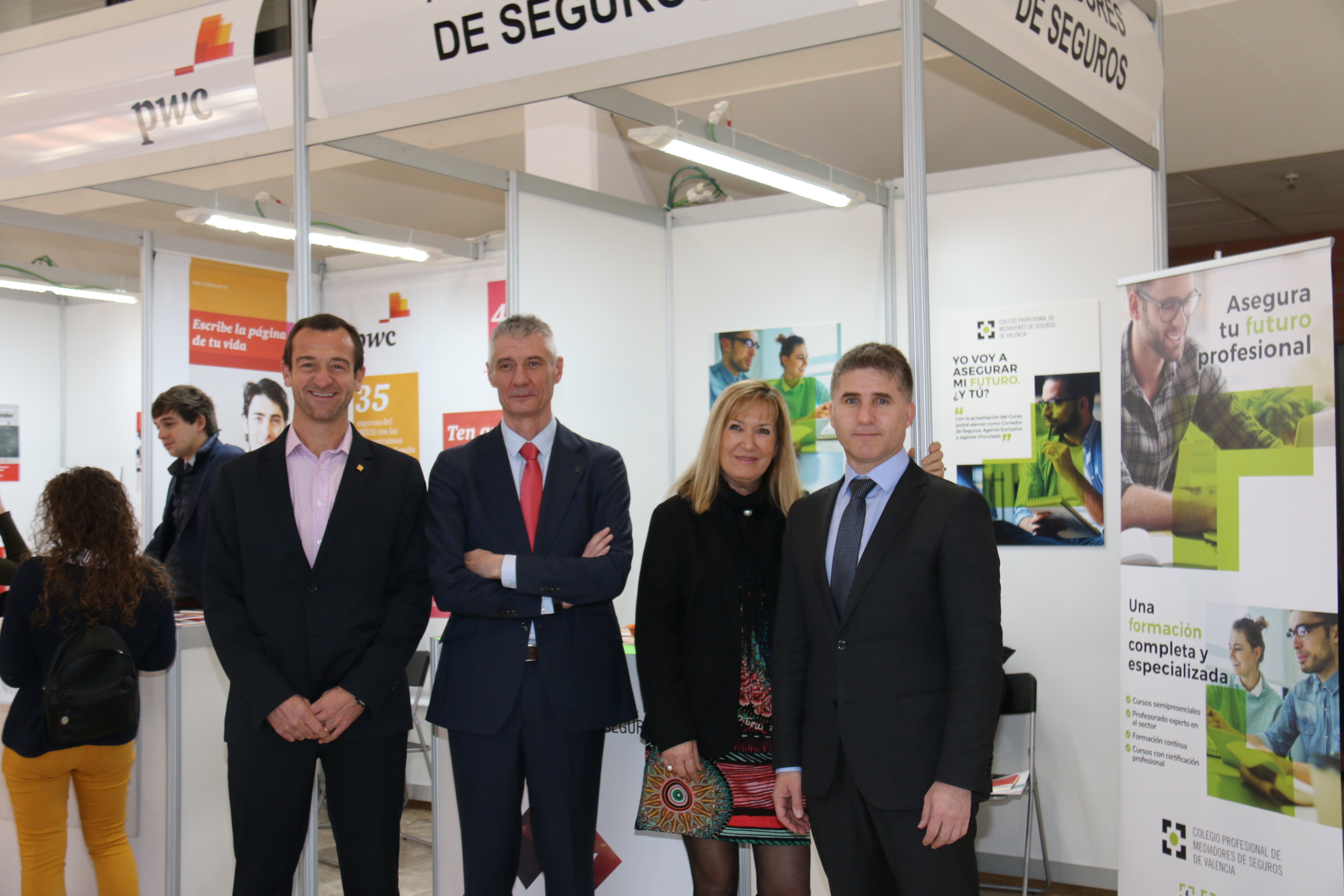 El Colegio de Valencia promueve la profesión de mediador ante los estudiantes que participaron en la XVIII edición del Foro de Empleo y Emprendimiento de la Facultat d'Economia de la Universitat de València. 'Mediador de Seguros, tu opción laboral' fue el título de la ponencia impartida por el profesor José Antonio Álvarez, y los miembros de la comisión de Formación del Colegio Alejandro Fuster y José Vicente Grau.