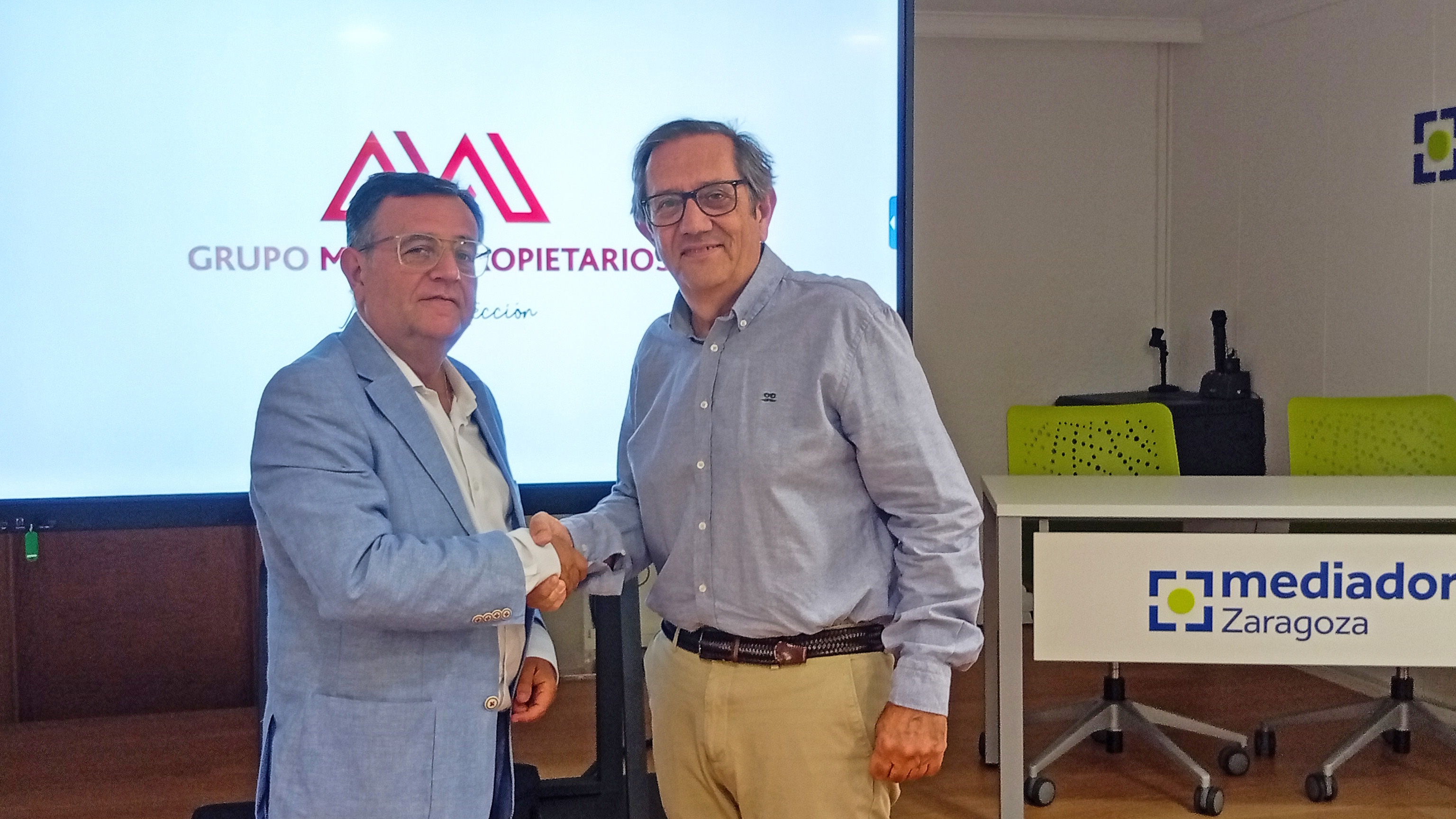 El Colegio de Zaragoza y Grupo Mutua Propietarios establecen nuevas vías de cooperación para apoyar a los mediadores y promover acciones formativas conjuntas. Ambas organizaciones acaban de firmar un nuevo convenio de colaboración que ha sido rubricado por Miguel de las Morenas, presidente de la institución zaragozana, y Miguel Mesa García, delegado Norte del Grupo Mutua Propietarios. Ambos representantes han destacado la importancia de este acuerdo como una oportunidad para generar valor añadido y avanzar en la mejora continua de la mediación aseguradora.