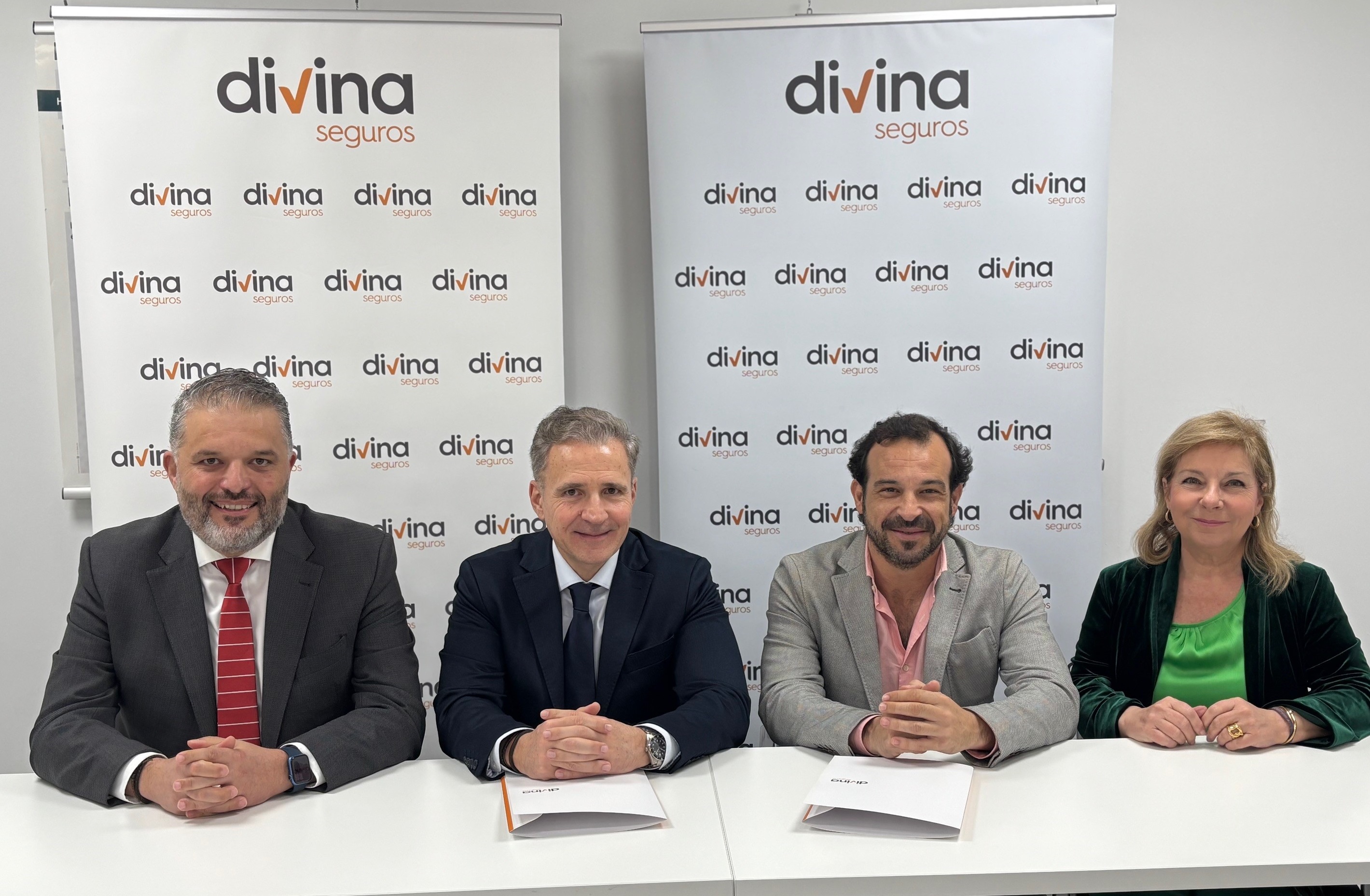 El acto oficial de la firma ha tenido lugar en las nuevas instalaciones de Divina Seguros en Sevilla. Por parte de la aseguradora, han asistido Martín Faz, director del Canal Corredores, y Francisco Alanis, director de Zona Andalucía Occidental. Y, en representación de Colmedse, José Diego Béjar, vicepresidente del Colegio, y Magdalena Campos, tesorera.