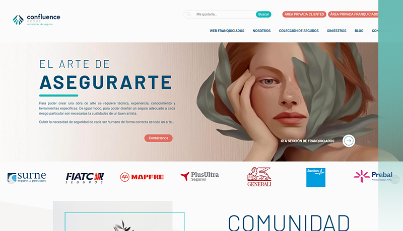 El cliente final tiene información sobre productos, siniestros y acceso a su plataforma privada de cliente, y el posible franquiciado tiene información sobre el modelo de integración de esta red de corredores y siendo ya parte de Confluence Group tiene en este espacio acceso privado a todas las herramientas propias que disfruta por ser parte de esta correduría.