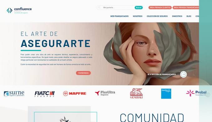 Confluence Group abre espacios independientes en su web para poder dar respuestas tanto al cliente final como al franquiciado. El resultado ha tenido una acogida muy favorable porque realmente es una web que da la opción de tener en una misma página dos espacios absolutamente diferenciados por el tipo de target, con accesos a las zonas privadas de ambos grupos.