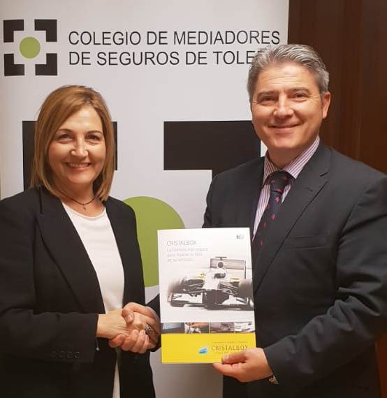 Cristalbox ha renovado su acuerdo de colaboración con el Colegio de Toledo por segundo año. A la firma acudieron Mari Luz Pérez Catalán, responsable del departamento Comercial de Cristalbox, y José Enrique García Mérida, presidente del Colegio. A través del convenio, Critalbox continuará ofreciendo ventajas a los mediadores colegiados.