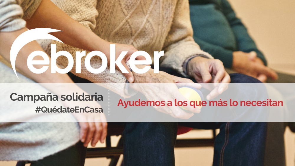 ebroker ha lanzado una acción solidaria en cooperación con su comunidad de usuarios y atendiendo al llamamiento #QuédateEnCasa, para generar conciencia social respecto al actual momento de emergencia sanitaria que afecta a muchos centros de mayores en toda España por el Covid-19. La campaña se realiza a través de Facebook de ebroker bajo el nombre "#QuédateEnCasa y ayudemos a los que más lo necesitan"; se solicita enviar por email a quedateencasa@ebroker.es fotografías que expresen cómo los corredores y su personal están viviendo este especial momento de confinamiento.