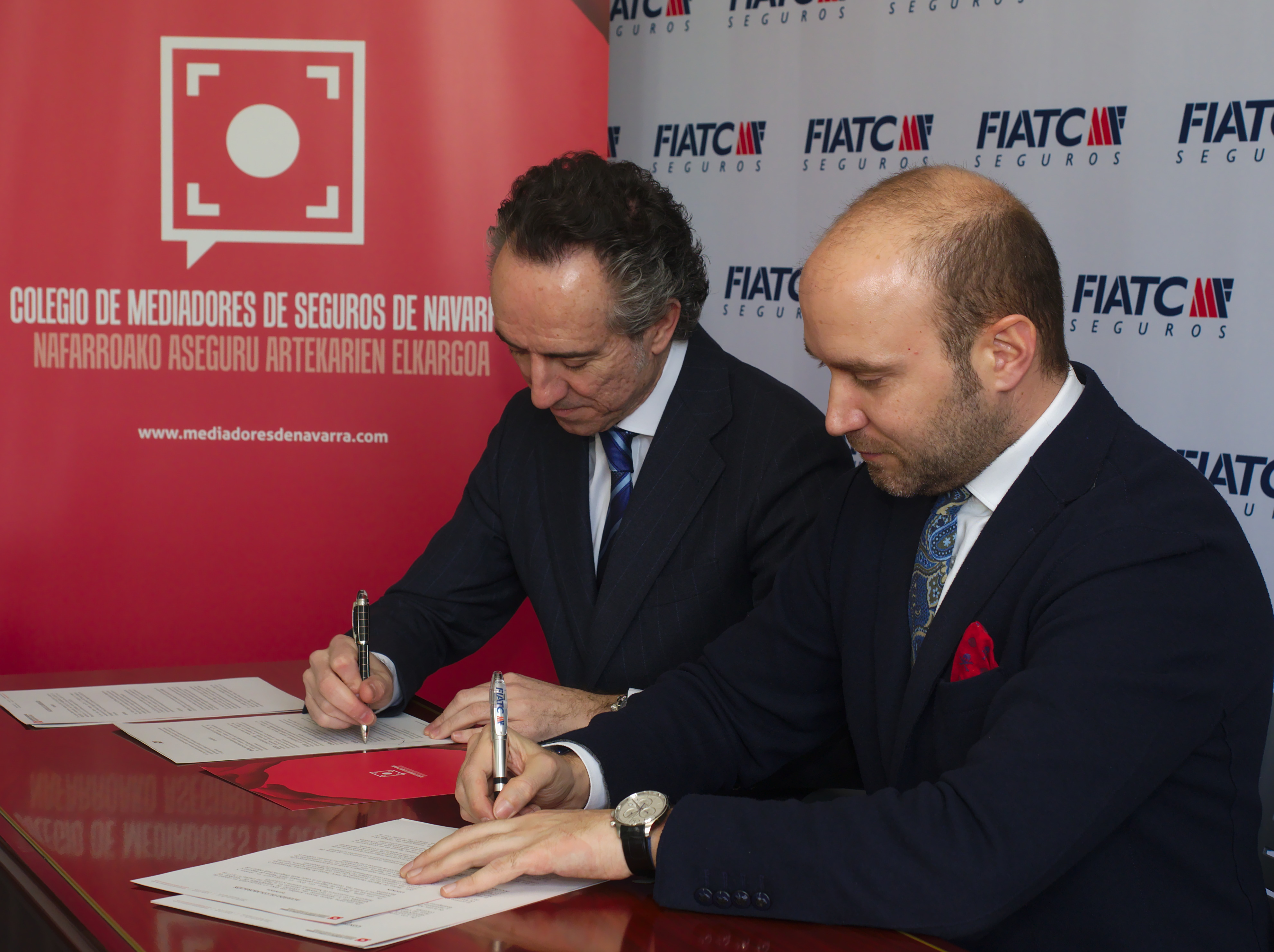 Alberto Moreno, presidente del Colegio de Navarra, y Alberto Sobejano, director de sucursal de Fiatc en la Comunidad Foral, han firmado por octavo año consecutivo un acuerdo de colaboración a través del cual se mantiene "el apoyo incondicional de la compañía aseguradora con la mediación". Así lo ha remarcado Sobejano: "Siempre hemos tenido el objetivo de impulsar el desarrollo profesional de la mediación en Navarra, mediante cursos de formación, conferencias y jornadas de estudio organizadas por el Colegio, además de sesiones de formación dirigidas a los colegiados". El director de compañía en Navarra ha añadido que "estamos encantados de colaborar activamente en el Colegio con iniciativas que divulguen el valor añadido de la figura del mediador, un signo más de la decidida apuesta de nuestra entidad por la mediación colegiada".