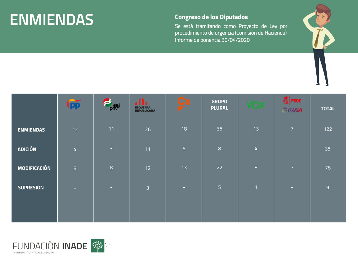 La norma se está tramitando por el procedimiento de urgencia en la Comisión de Hacienda en el Congreso de los Diputados. Las enmiendas todavía no se han publicado en la web del Congreso de los Diputados y tampoco hay una fecha establecida para ello. Desde esta institución se indica a Grupo Aseguranza que la situación excepcional que vivimos "ha retrasado todo un poco".