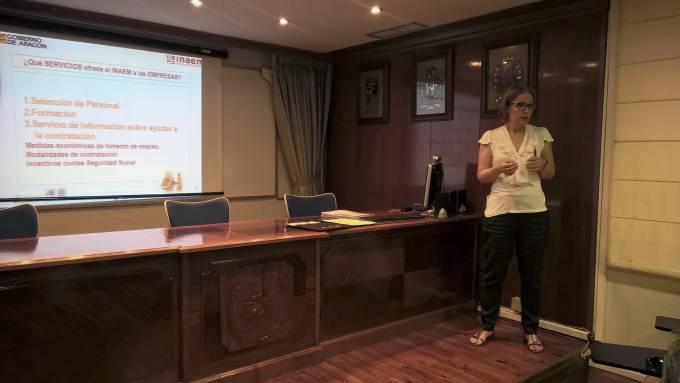 Mercedes San Agustín, técnico de gestión de empleo del Espacio Empresas del Inaem, ha explicado que “Espacio Empresas es todavía una unidad muy joven que se creó para ayudar específicamente a las empresas en estos años de tanta crisis y lo que buscamos es informar a los profesionales de su existencia como catalizador de servicios para que puedan solicitarlos”.