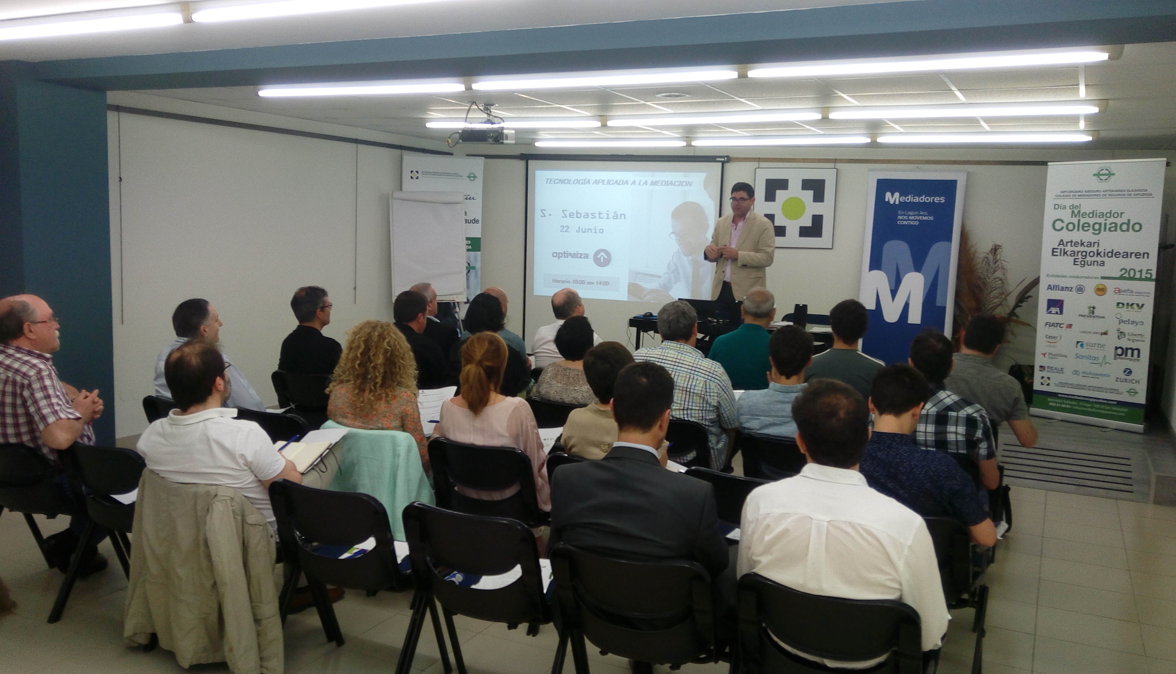 El salón de actos del Colegio de Gipuzkoa acogió una jornada formativa sobre ‘Tecnología aplicada al PEM’ organizada por Observatorio Tecnológico de la Mediación (OTM) en colaboración con Lagun Aro.
