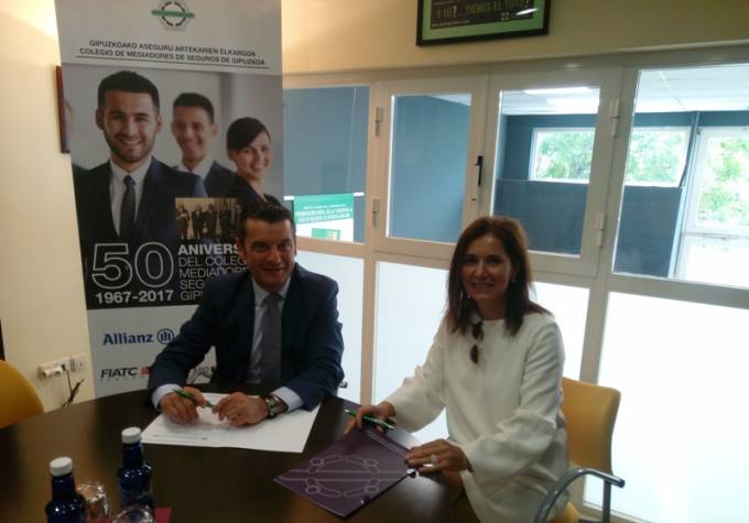Lagun Aro y el Colegio de Guipúzcoa han renovado su acuerdo de colaboración, por lo que la aseguradora seguirá vinculando su imagen a las actividades del colegio y apoyando los distintos programas de formación y de desarrollo profesional dirigidos a los mediadores colegiados. El convenio lo han firmado Sonia Gomara, directora de Lagun Aro en la Zona de Guipúzcoa y Navarra, e Iñaki Durán, presidente de la institución colegial, que ha subrayado: "Para el Colegio de Guipúzcoa, contar con la colaboración de Lagun Aro permite reforzar, año tras año, nuestra apuesta por el desarrollo de la profesión a través de la organización y celebración de jornadas formativas e informativas de interés para el mediador".