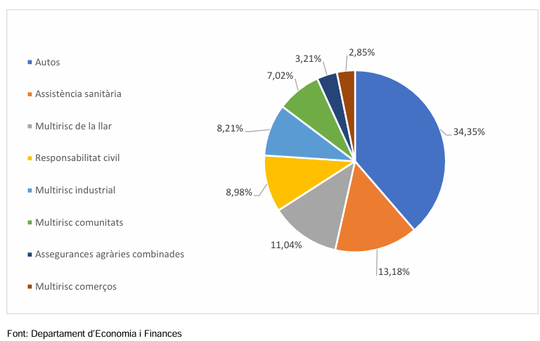 Por lo que respecto a los diferentes ramos No Vida, Autos encabeza los seguros que intermedian los mediadores y cuentan con una cuota del 34,3%; le sigue Asistencia Sanitaria (13,2%), Hogar (11%), Responsabilidad Civil (9%) y Multirriesgo Industria (8,2%). Importancia también tienen los seguros de Comunidades (7%), los seguros agrarios (3,2%) y Comercios (2,8%). Estas modalidades suman el 88,8% de la actividad total que intermedian corredores y agentes en Cataluña supervisados por la Generalitat.