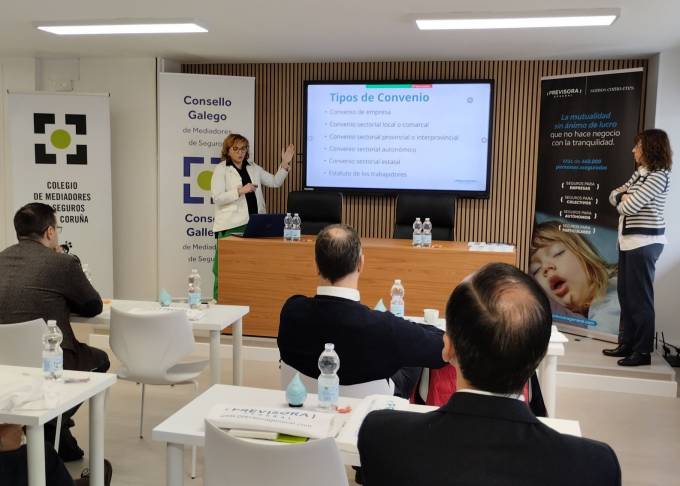 Los mediadores de Galicia de Previsora General han celebrado su II encuentro anual en la sede del Consejo Gallego con una sesión en la que Yolanda Trujillo, directora de Operaciones, Marketing y Comunicación, y Neus Borgoñoz, responsable comercial de la mutualidad en la zona norte repasaron los seguros de convenio colectivo y presentaron los seguros de accidentes colectivos.