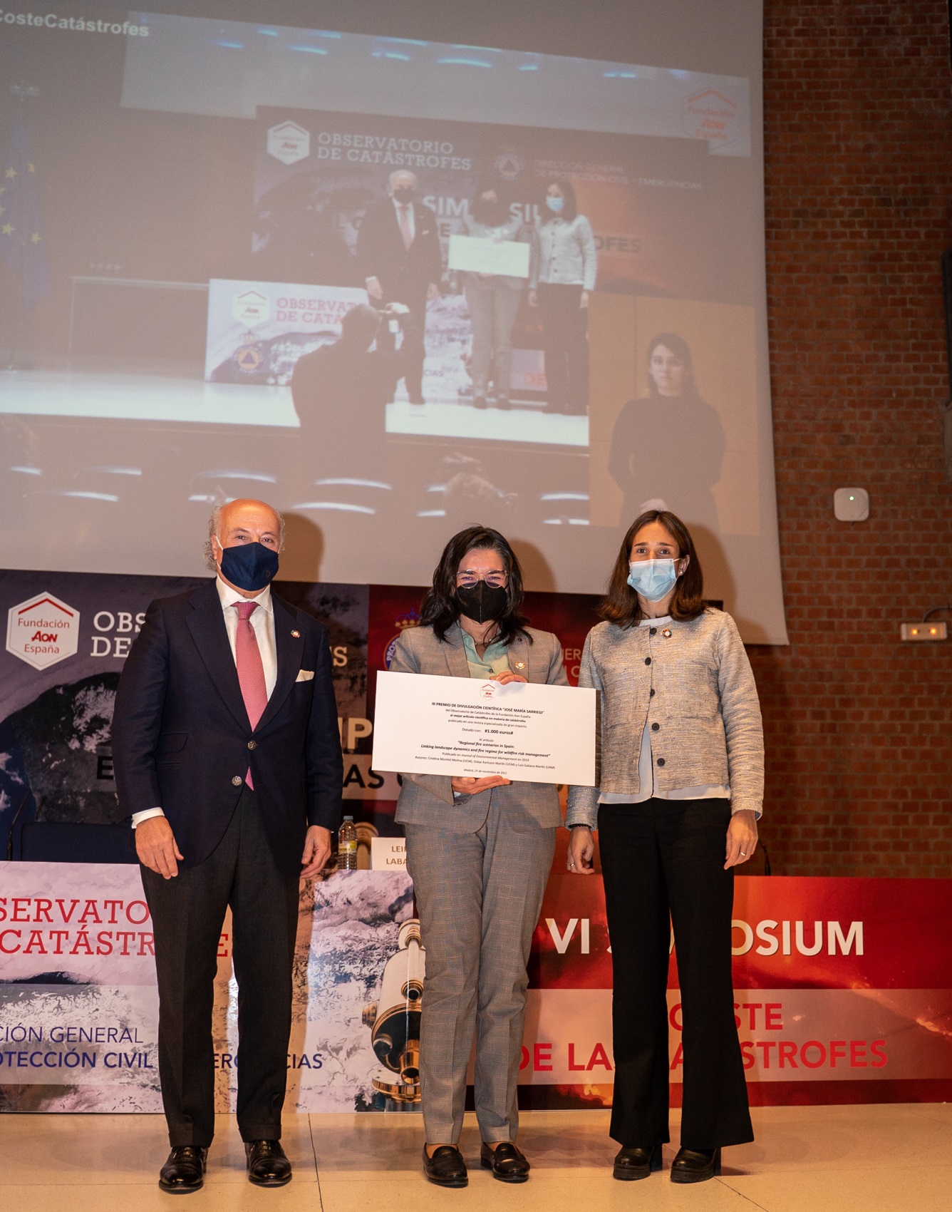 La entrega se celebró durante el VI Simposium del Observatorio 'El Coste de las Catástrofes'. Pedro Tomey, presidente del Observatorio, señaló que desde Aon "estamos muy satisfechos con este premio, que estimula y fortalece los avances de la investigación en catástrofes y contribuye a la construcción de resiliencia en nuestra sociedad".
