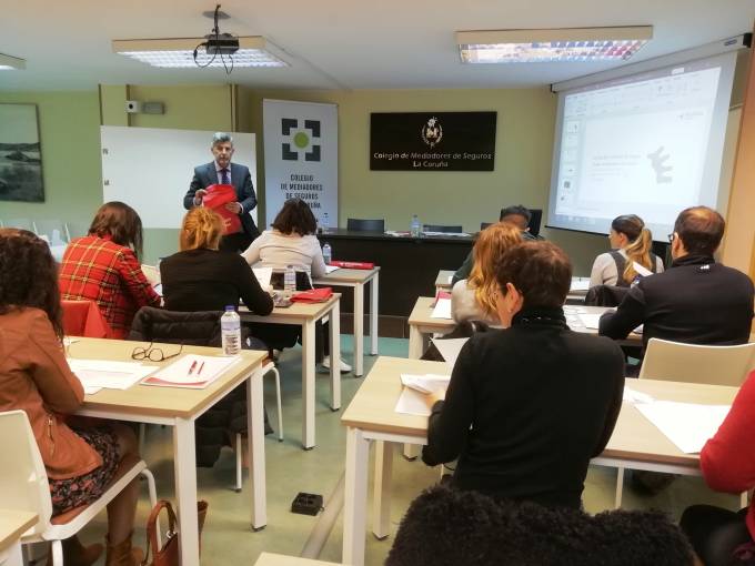 Luis Mauri, director de sucursal de Plus Ultra, impartió la tercera clase presencial del Curso Grupo B intensivo del Colegio de La Coruña en la que habló sobre el contrato del seguro y obligaciones de las partes.
