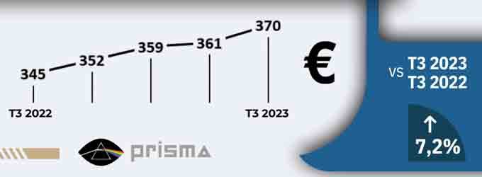 tercer trimestre alcanza 168 euros, con un incremento del 7,7% respecto al mismo periodo del año anterior. En esta línea de negocio, Prisma señala que la nueva producción cuenta con una subida de prima del 9,2% situándose en 166 euros, mientras que la subida en renovación de cartera ha sido del 7,6% y la prima media se coloca en 169 euros.