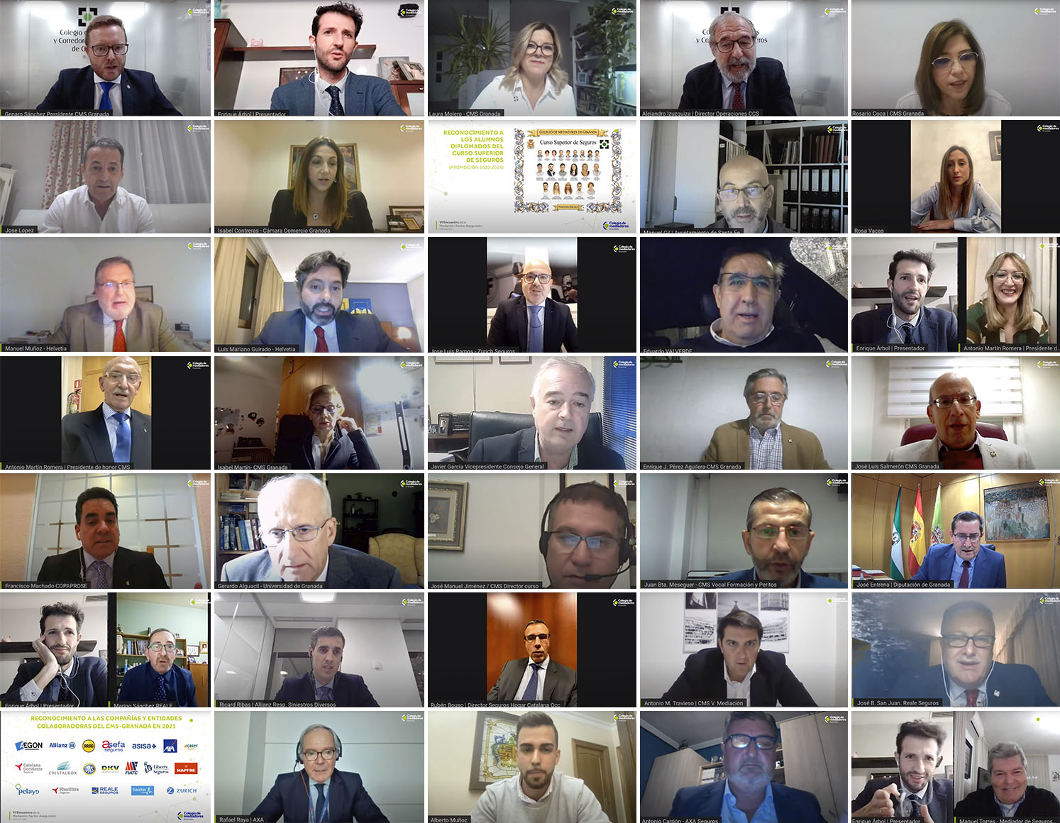 En el encuentro celebrado online contó con las intervenciones de Alejandro Izuzquiza, director de Operaciones del CCS; Gerardo Alguacil, doctor en Física por la Universidad de Granada; Ricard Riba, responsable de Siniestros-Diversos en Allianz España; Rubén Bouso, director Seguros de Hogar Catalana Occidente; Manuel Alberto Gil, alcalde del municipio de Santa Fe; Manuel Torres Molina, mediador de seguros colegiado con despacho profesional en Santa Fe); José Entrena, presidente de la Diputación de Granada y el presidente del Colegio de Granada, Genaro Sánchez.
