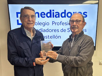 Falcó recibió una placa conmemorativa de la mano de Antonio Fabregat, presidente del Colegio, quien ha resaltado "el compromiso ininterrumpido de Santiago con su colegio y con toda la mediación castellonense durante este medio siglo".