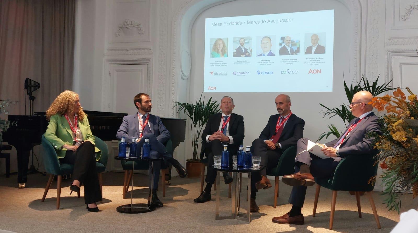 En la mesa redonda sobre la cuestión participaron Marta Nodal, Regional Director Atradius Spain, Portugal and Brazil; Enrique Cuadra, CEO de Solunion España; Guillermo Rodríguez, CEO de Coface España y Portugal; y Manuel Alves, director general Cuenta Propia de Cesce; moderados por Jon Ander Barrenechea, Head of Credit Solutions de Aon España.