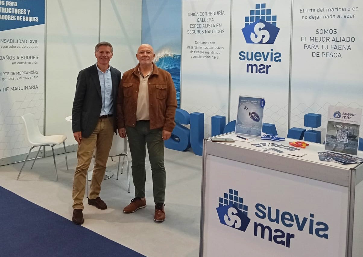 José Manuel Maquieira, responsable de desarrollo de negocio de Suevia MAR, y Jesús Álvarez, director de la oficina de Suevia en A Coruña, se han desplazado a la feria para mostrar las soluciones aseguradoras a navieras, armadores, cofradías de pescadores y demás empresas del sector.