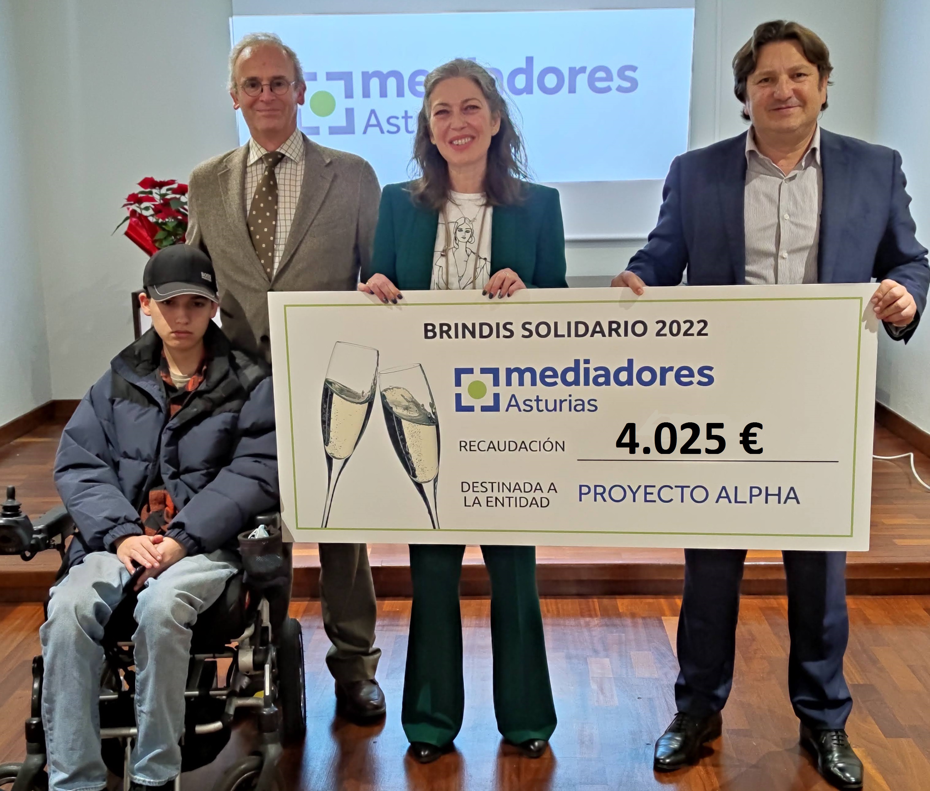 En su última edición, el Brindis Solidario del Colegio de Mediadores de Seguros de Asturias ha logrado recaudar 4.025 euros, importe que se ha destinado íntegramente al Proyecto Alpha para ayudar a quienes padecen de distrofia muscular de cinturas por déficit de sarcoglicanos. El principal objetivo de este proyecto es buscar un tratamiento para esta enfermedad que destruye los músculos y causa cansancio y debilidad de forma crónica.