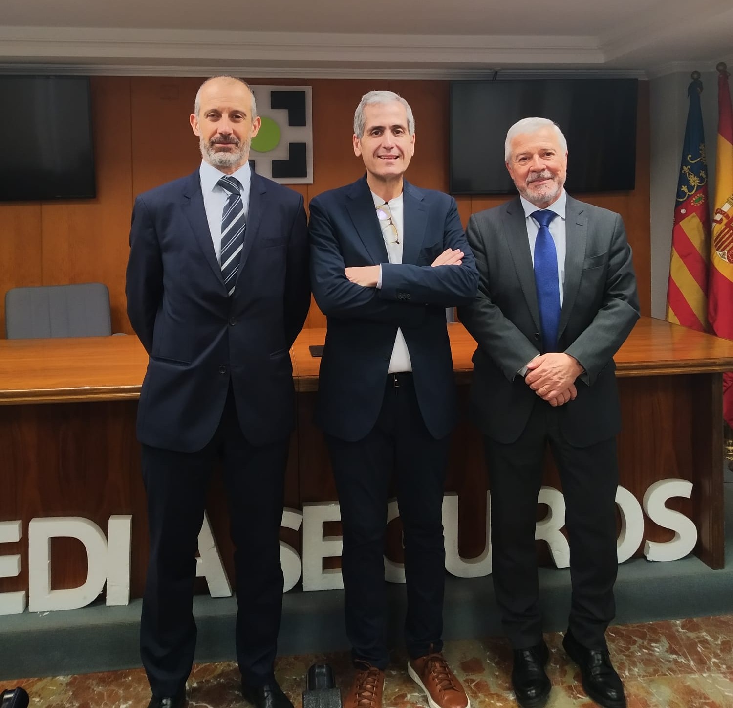El acuerdo se firmó entre Florentino Pastor, presidente del Colegio, y Vicente Rico Albert, director de Operaciones y Carlos Mirón, adjunto a Dirección de Operaciones de la aseguradora.