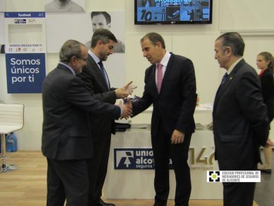 Unión Alcoyana premia el trabajo y la constancia del Colegio de Alicante. El galardón fue entregado en Forinvest por Enrique Jorge Rico, director general de Unión Alcoyana, a Eusebio Climent, presidente del Colegio.