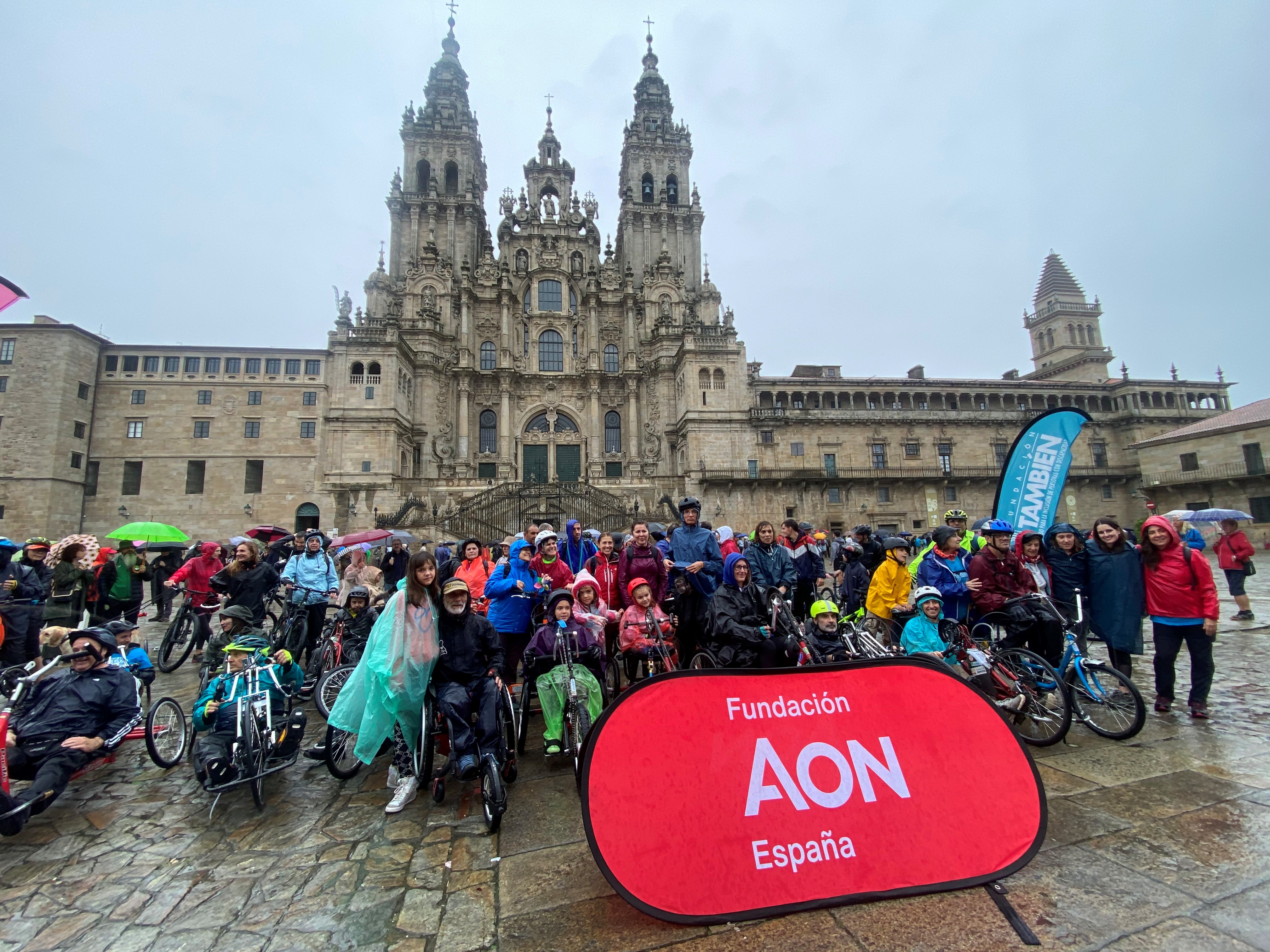 7 voluntarias de la Fundación Aon han acompañado a 26 personas con discapacidad, autismo o movilidad reducida de la Fundación También, junto con sus familiares y cuidadores, a hacer el Camino de Santiago en el que participaron también la periodista Irene Villa, Madrina de este Camino; el actor de la película Campeones, Jesús Lago, o la joven influencer cántabra Superlu.