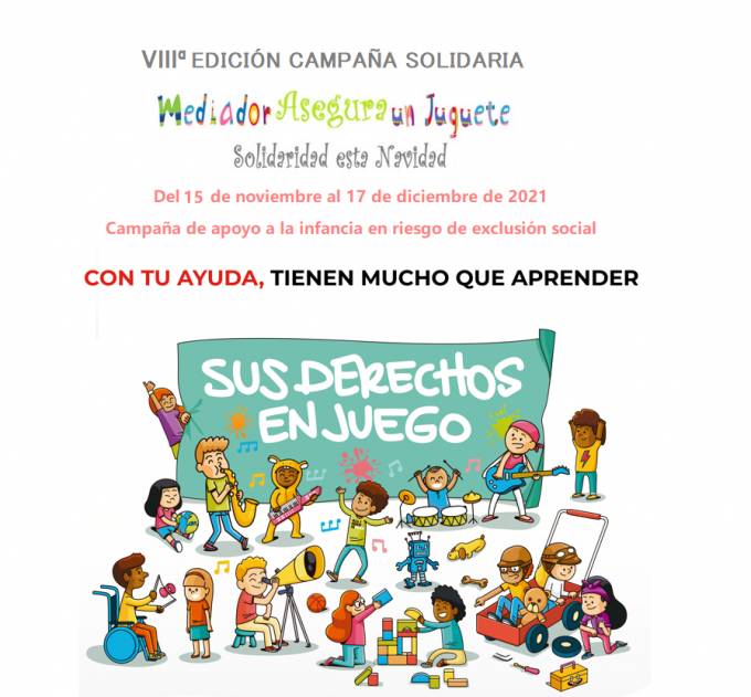 El Colegio de Málaga pone en marcha la 8ª campaña solidaria 'Mediador Asegura un juguete esta Navidad' a través de la que se recogen juguetes nuevos educativos, creativos y no bélicos para los niños más vulnerables. La campaña se lleva a cabo en colaboración con Cruz Roja Juventud, Comité provincial de Málaga.
