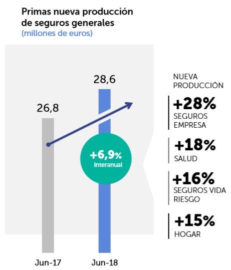 Principalmente han mejorado los seguros relacionados con empresas (+28%) y Salud (+18%), aunque indica que todas reflejaron mejoras. Vida Riesgo mejoró sus datos un 16% y Hogar lo hizo un 15%. Estos datos hacen ver a la entidad los seguros como "uno de los principales ejes estratégicos".
