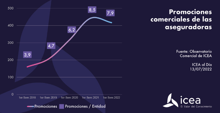 La actividad promocional del primer semestre en el sector asegurador español superó las 400 promociones. Esta cantidad, según los datos de ICEA, es ligeramente inferior a los porcentajes alcanzados en el mismo periodo de 2021. Tanto las promociones en general, como las realizadas por las entidades han sido inferiores.