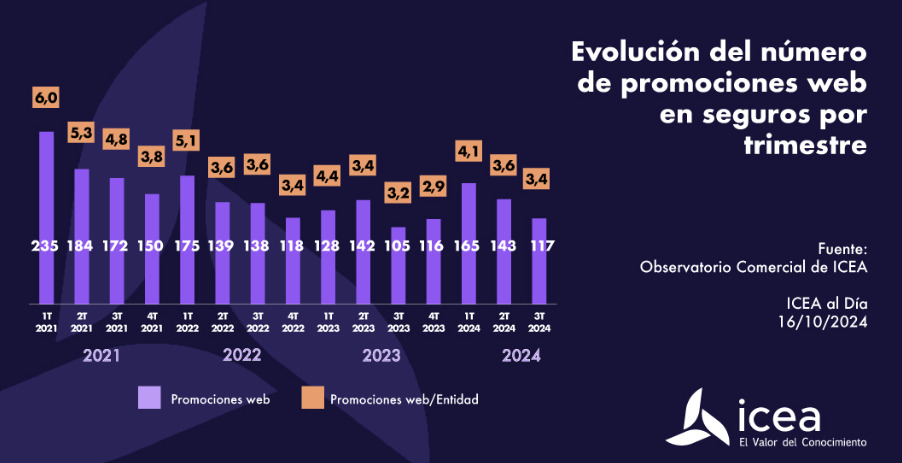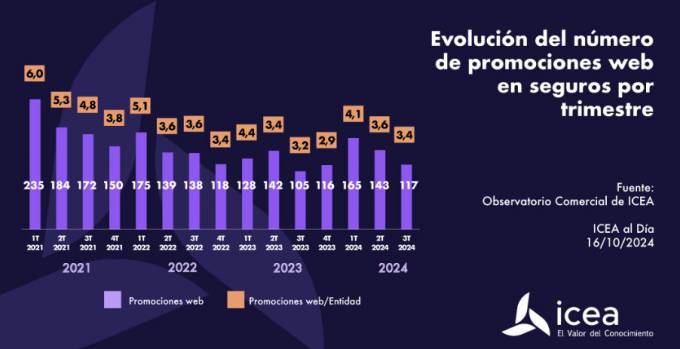 La actividad promocional de las compañías aseguradoras a través de su web empezó con fuerza este 2024. De hecho, en los datos de ICEA se observan que se han dado cifras no vistas en el sector desde 2022. No obstante, en los trimestres siguientes esta actividad se ha ido ralentizando "pero con mayores resultados que en los mismos trimestres de 2023", subraya ICEA.