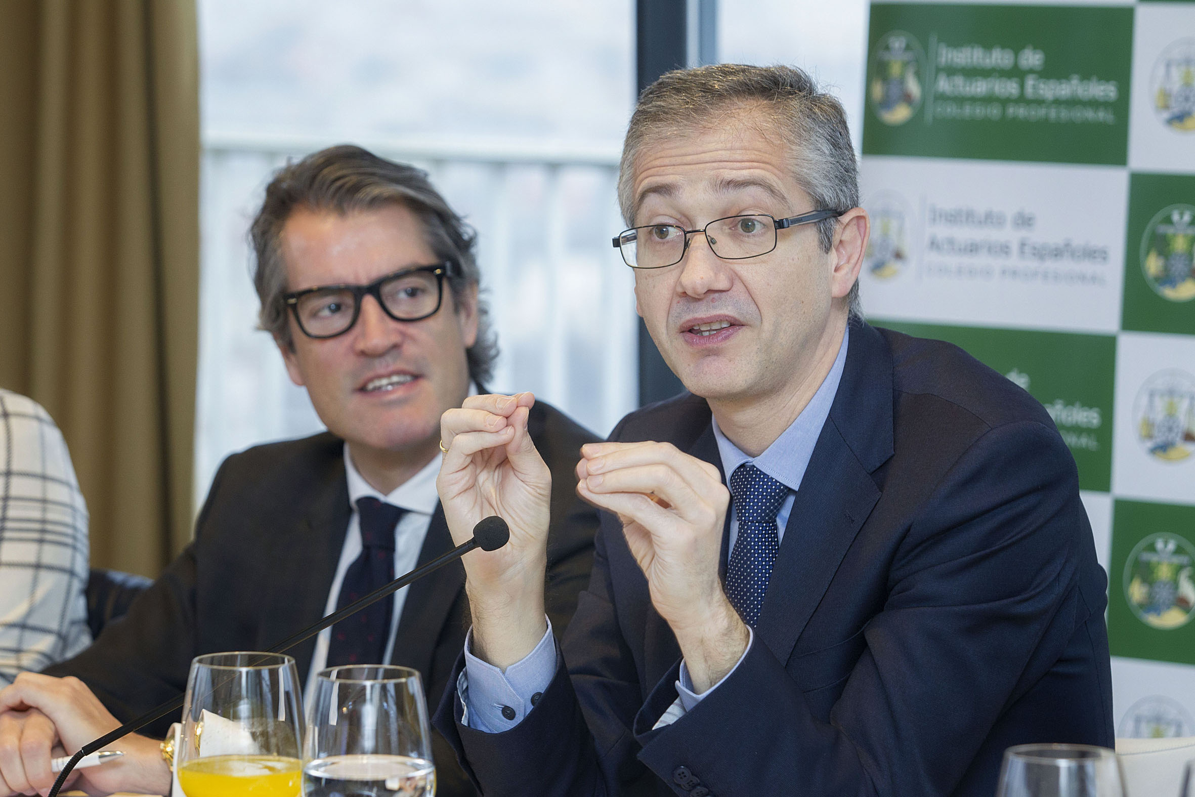 El Presidente del Instituto, Gregorio Gil de Rozas, ha destacado ante el Gobernador las contribuciones que esta profesión puede realizar en materia de pensiones públicas y previsión social complementaria. Asimismo, ha subrayado la necesidad de establecer una adecuada regulación y mejorar las guías de buenas prácticas de aquellos productos que como la hipoteca inversa, tenga asociado un riesgo de longevidad que haga aconsejable la participación de actuarios como asesores independientes.