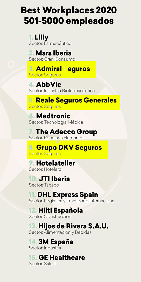 Admiral, Reale y DKV, en la lista Best Workplaces España 2020