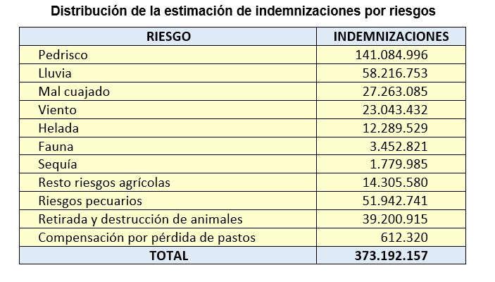 Agroseguro indemnizó siniestros por valor de 373 millones de euros en el primer semestre de 2020