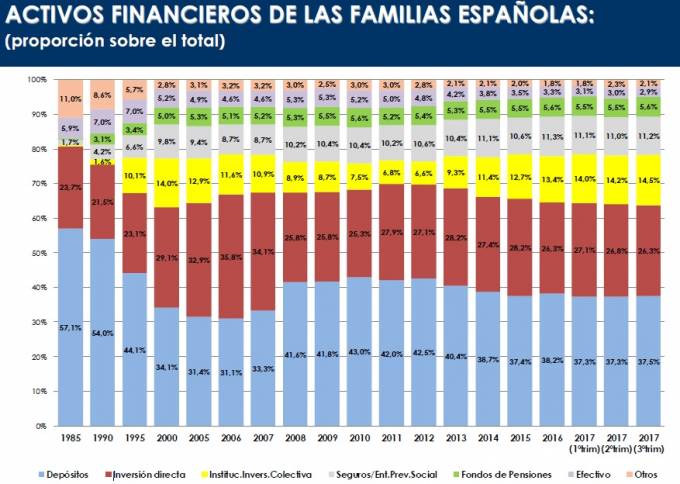 El ahorro financiero de las familias españolas hasta septiembre, indica el informe, ha sufrido un leve incremento en relación con finales del año 2016. Los hogares españoles aumentaron su saldo en 39.178 millones lo que supone un alza del 1,9% y se ha situado en 2,11 billones de euros.