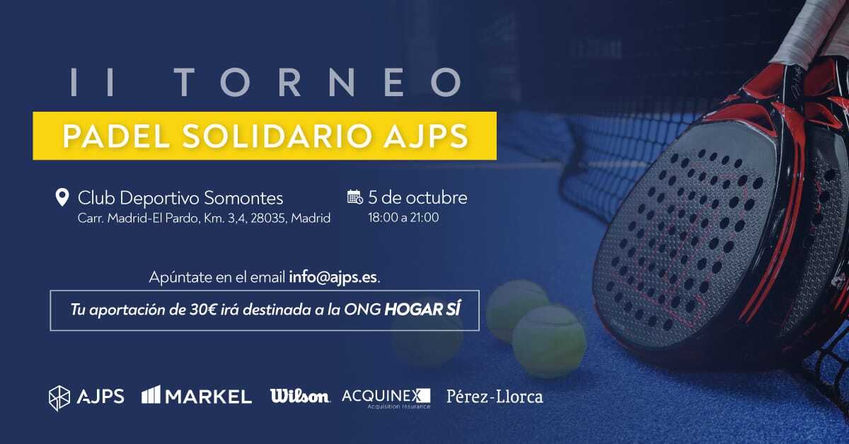 La Asociación de Jóvenes Profesionales del Seguro (AJPS) ha puesto en marcha el segundo Torneo de Pádel Solidario que tendrá lugar el próximo 5 de octubre en Madrid. La recaudación del torneo irá destinado a la ONG Hogar Sí, cuya misión se centra en trabajar para que ninguna persona viva en la calle.
