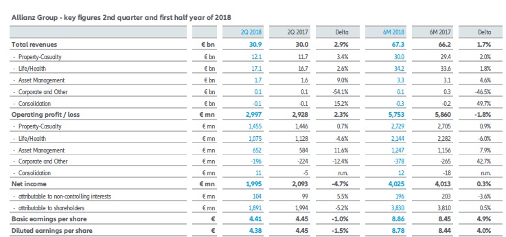 Allianz ha presentado esta mañana sus resultados del primer semestre del año donde refleja un beneficio neto de 4.025 millones de euros, con un incremento del 0,3%. El resultado en el segundo trimestre cayó un 4,7%.