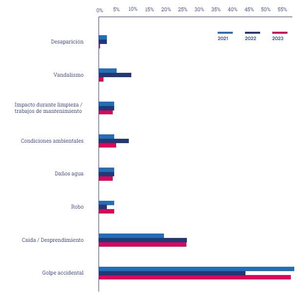 Evaluadas las causas que originan estos siniestros, la más común sigue siendo el golpe accidental inferido a un objeto de arte que se halla en exhibición en una galería de arte, exposición, museo o casa de subastas. A continuación se sitúa la caída o desprendimiento de su anclaje de un objeto de arte.