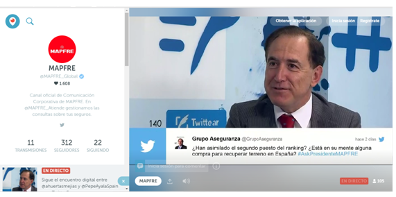 El presidente de Mapfre, Antonio Huertas, ha respondido en directo a través de twitter a las preguntas que los internautas le han formulado sobre la compañía y la situación del seguro en general. Huertas se ha convertido en el primer ejecutivo del Ibex 35 que se enfrenta en directo a una entrevista a través de las redes sociales. El presidente de la aseguradora ha reconocido ser un “apasionado de la tecnología” y que no podía dejar pasar esta oportunidad de acercase así a clientes y usuarios. ”Las redes son importantes, son un buen instrumento para escuchar y entender qué es lo que está pasando y lo que los clientes piensan. En el caso de twitter me resulta muy útil. Le dedico entre 30 o 40 minutos al día y personalmente me sirve para estar conectado y entender el mundo y trasladar a quien quiera de forma abierta cómo soy yo y qué hace mi empresa”.